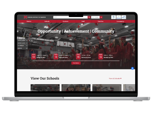 ADA Compliance- The Milton School District website demonstrates a strong commitment to accessibility, aligning with the Americans with Disabilities Act (ADA) requirements. This means that users with disabilities can navigate the site effectively, thanks to features such as screen reader compatibility and keyboard navigability. The website’s color contrast, text resizing options, and alt text for images ensure a more inclusive experience for all users.