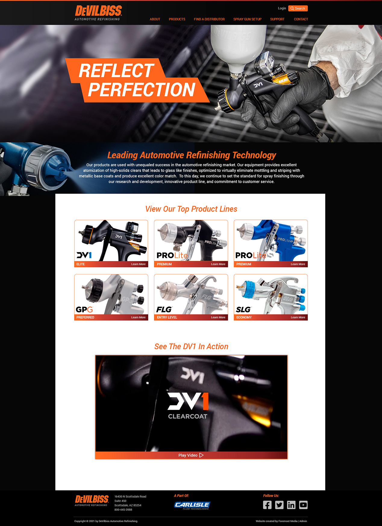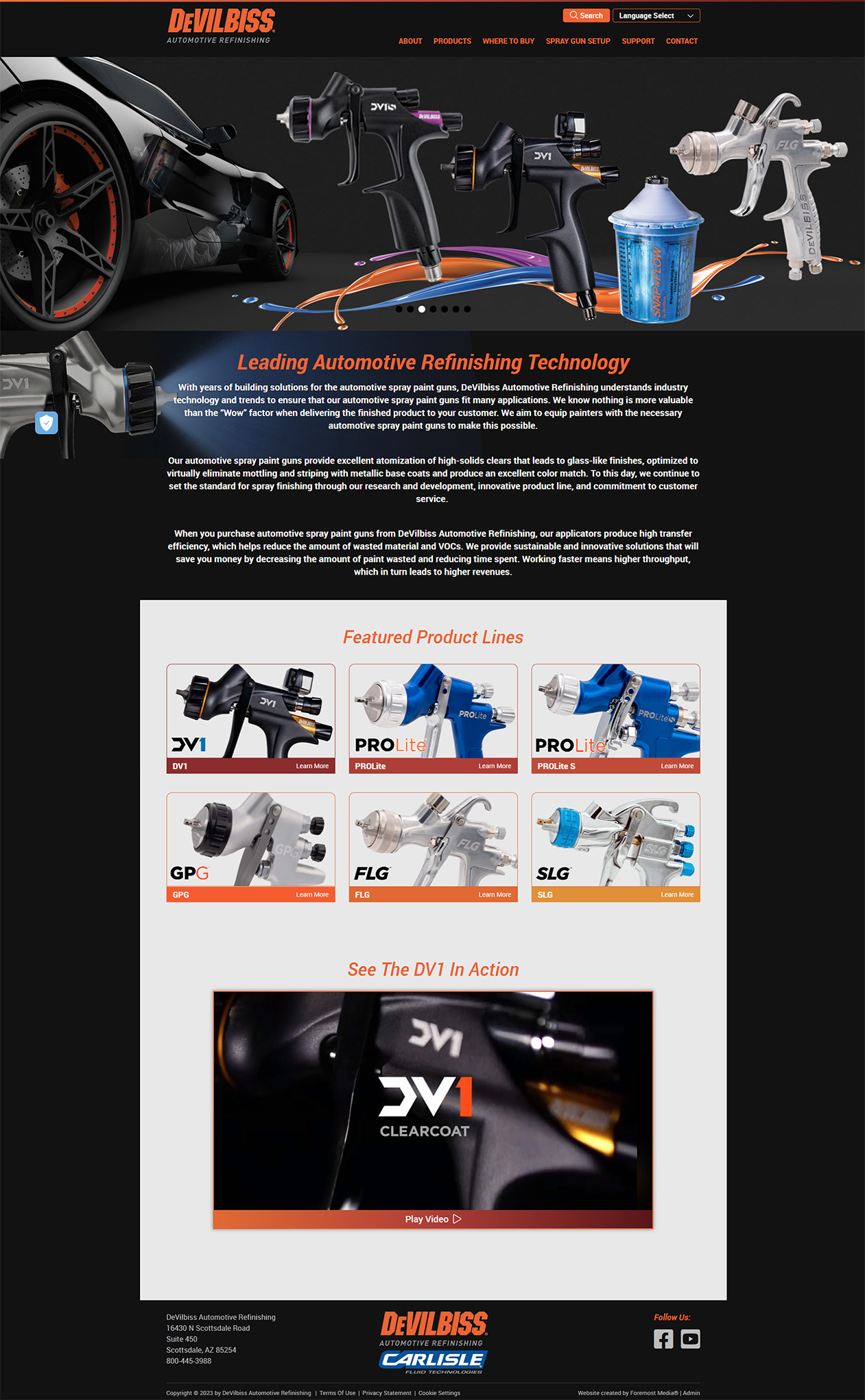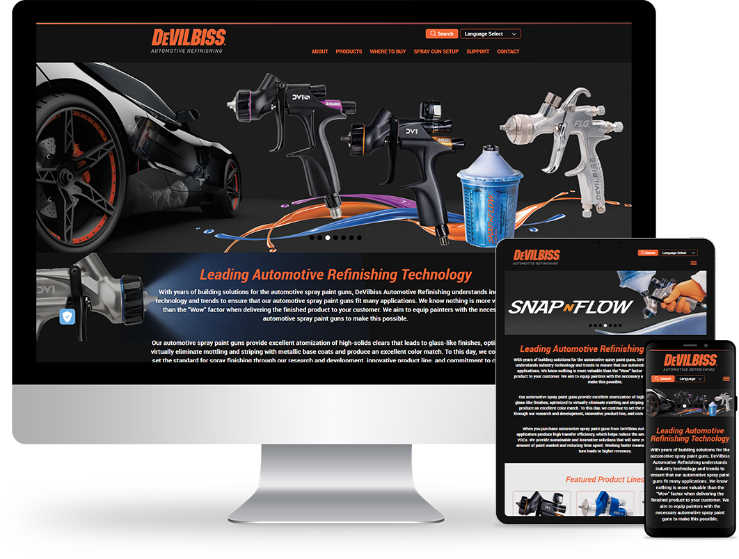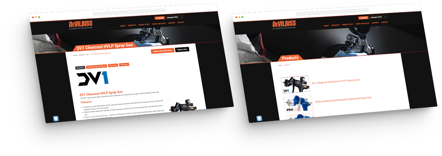 To improve navigation, featured products were positioned front and center on the homepage, allowing visitors to easily and quickly compare products and study technical specifications. A “Where to Buy” button allows users to find authorized representatives within a specified radius by entering their ZIP code. Finally, to create brand consistency, instead of having links to separate French, Spanish, and German sites, we added a “Language Select” option. The look of the site is identical while allowing users to explore in their native language.