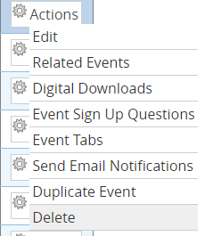- Hover the Actions button on the right and select “Duplicate Event” from the dropdown